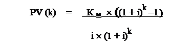 Текущая величина платежей по кредиту определяется по следующей формуле: /23 c.38/ (9)