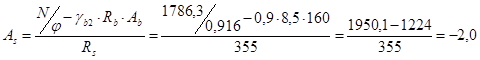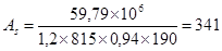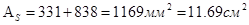 Площадь рабочей арматуры AS(4Æ20)=12,56 см2.