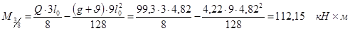 - на приопорных участках, равных 1/4 пролета, при мм: