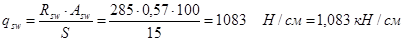 Приняв усилия в хомутах на единицу длины ригеля равны: