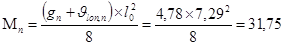 Расчетная схема ригеля – однопролетная шарнирно опертая балка пролетом . Вычисляем значения максимального изгибающего момента М и максимальной поперечной силы Q от полной расчетной нагрузки: