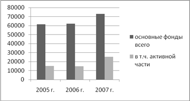 Из данной таблицы видно, что удельный вес активной части основных фондов в общей их стоимости увеличился на 5,6% и составил в 2007г. 29,8%. Фондоотдача в 2007г. сравнению с 2005г. увеличилась на 0,54 и составила 1,56. Это означает, что на один рубль основных фондов приходится 1,56 руб. произведённой продукции. Это является положительной тенденцией, так как увеличение этого показателя свидетельствует об эффективной деятельности хозяйства.
