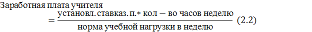 Заработная плата учителя зависит от объема учебной работы, определяемой учебными планами школ, в которых предусматривается число часов занятий в неделю по всем предметам и по каждому классу. Полная ставка зарплаты выплачивается при выполнении установленной нормы учебной нагрузки в неделю: учителям 1-4 классов 20 ч, 5-11 классов – 18ч. Месячная зарплата учителя определяется путем умножения ставки зарплаты на его фактическую нагрузку в неделю и деления полученного произведения на установленную норму часов.
