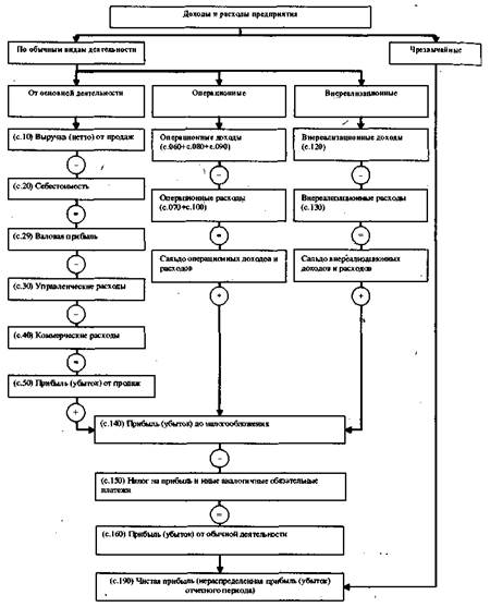 Счет прибылей и убытков связан с другими синтетическими счетами бухгалтерского учета, которые отражают движение доходов и расходов предприятия. Так, на счет 90 "Продажи" формируется финансовый результат от экономической деятельности, который отражается в отчетности формы № 2 "Отчет о прибылях и убытках" в двух Показателях: валовая прибыль и прибыль от продаж.