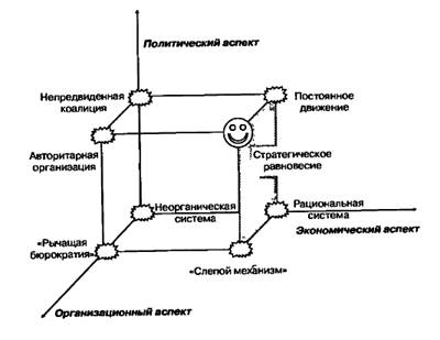 Совершенствование системы управления предприятием или организацией может проводиться с использованием разнообразных подходов. Одним из них является модель стратегического состояния или стратегический куб. Можно предположить, что эффективность деятельности любой компании зависит от разработанности трёх составляющих, характеризующих её работу.