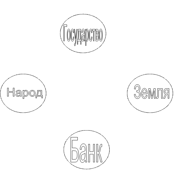 За территорией городов есть большое количество бесхозной земли, которая ничем и некем не используется. Ее можно дать безвозмездно в собственность населению, а население, в свою очередь, может это землю закладывать в банк, как гарантию выплаты кредита. То есть государство в этом случае поручается за выплату кредита. Население берет кредит, обеспеченный государством под небольшие проценты. В случае невозможности погасить кредит у банка остается эта земля, которой он может распоряжаться по своему усмотрению. Так же банк может вернуть эту землю государству с последующей выплатой государства денег за эту землю банку.