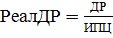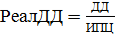 Между номинальными и реальными величинами доходов и расходов могут быть существенные расхождения в связи с изменением цен. Реальное значение показатели доходов и расходов (РеалДД и РеалДР) приобретают при расчете с корректировкой на индекс потребительских цен (ИПЦ), выраженный в коэффициентах и исчисляются по формулам: