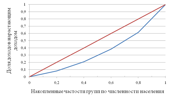 Графически степень неравенства отражают путем построения кривой Лоренца.
