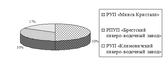 Таким образом, можно сделать вывод, что конкурентами РУП «Климовичский ликеро-водочный» завод являются предприятия с лидирующими позициями на рынке алкогольной продукции.