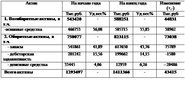 В структуре активов оборотные активы имеют большую долю, чем внеоборотные активы. Наибольшая часть внеоборотных активов представлена основными средствами. В оборотных активах прослеживается рост запасов и затрат, дебиторской задолженности.
