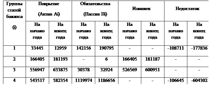 Из таблицы 19 видно, что из 4 условий выполняются три (2,3,4),за весь период не выполняется соотношение А1≥П1 и означает, что наиболее ликвидные активы не могут покрыть краткосрочные обязательства. Остальные соотношения выполняются. Баланс неликвиден в части краткосрочных активов и пассивов.