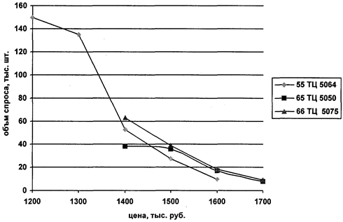 б) просматривается тенденция к постепенной переориентации покупательского спроса с простых моделей телевизоров с диагональю экрана 37 см на более сложные и технически совершенные телевизоры среднего и высокого класса с диагональю экрана 51-61 см;