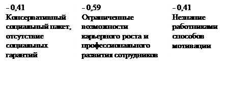 1. «Низкая удовлетворенность, социальная защищенность и безопасность работников - Ограниченные возможности карьерного роста и профессионального развития сотрудников»;