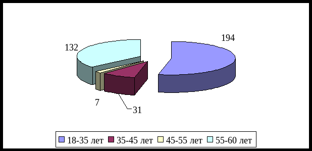 Возрастной состав ООО «СДН ТрансАвто» на 01.01.2009 г 1. 18-35 лет - 157 человек (43,1 % от общей численности) 2. 35-45 лет - 107человек (29,4 % от общей численности) 3. 45-55 лет - 97 человек (26,6 % от общей численности) 4. 55-60 лет - 3 человека (0,87 % от общей численности)  Рис. 2 – Возрастной состав кадров «СДН ТрансАвто»