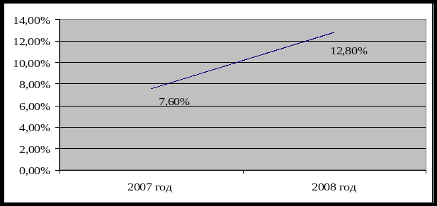 Динамика текучести кадров. 2007 год – 7,6 % 2008 год – 12,8 % (рис. 3)  Рис. 3 – Динамика текучести кадров «СДН ТрансАвто»