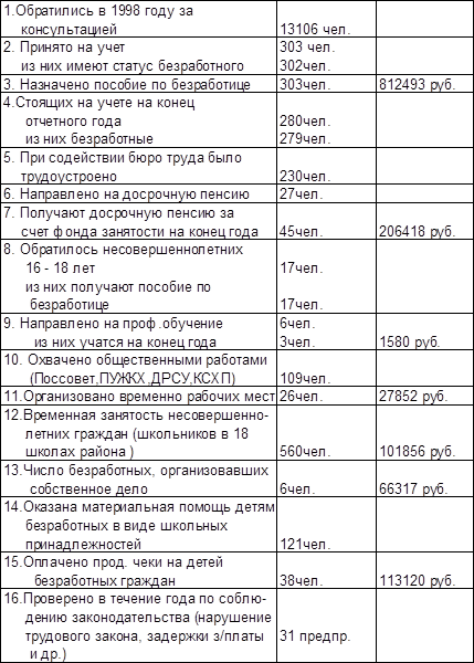 Краткий отчет работы Кукморского бюро труда и занятости в 1998г.