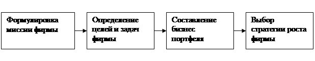 Стратегическое планирование – это управленческий процесс создания и поддержания стратегического соответствия между целями фирмы, ее потенциальными возможностями и шансами в сфере маркетинга. Оно опирается на четко сформулированное программное заявление фирмы, изложение вспомогательных целей и задач, здоровый хозяйственный портфель и стратегию роста. Этапы стратегического планирования в ООО «Алеанд» представлены на рис. 1.1.1, а их описание дается ниже.
