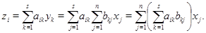 Соотношения (5) и (6) выражают согласованность действий сложения и умножения на скаляры в множествах матриц размера и отображений . В случае произвольных множеств имеется еще важное понятие произведения (композиции) отображений. Разумно ожидать, что композиция двух линейных отображений должна выражаться неким согласованным образом в терминах матриц. Посмотрим как это делается.