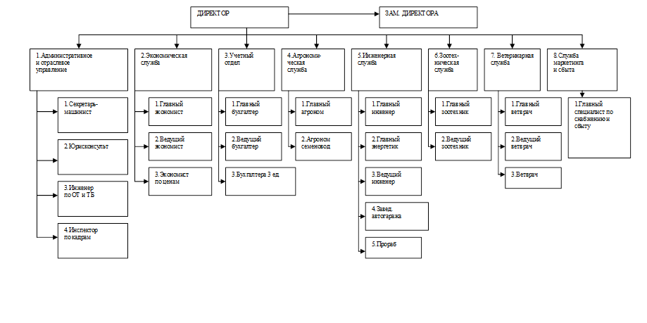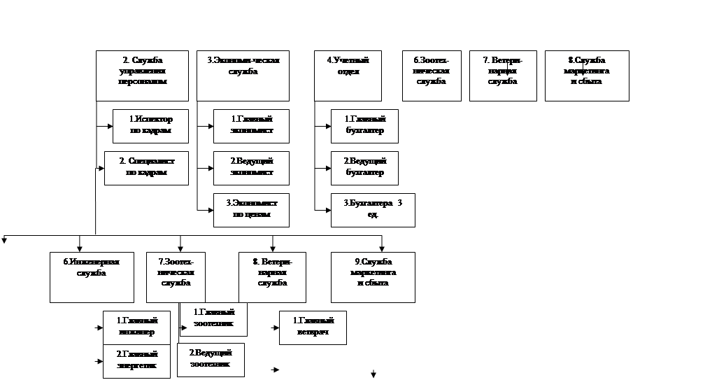Организационная структура РУПП "Птицефабрика "Победа" построена по принципу разделения обязанностей между функциональными подразделениями (прил.1) Так, например, экономическая служба отвечает за экономическую деятельность предприятия, учетный отдел несет ответственность за финансовую сторону предприятия, ветеринарная служба ответственна за развитие и здоровье животных и птицы, инженерная служба отвечает за техническую базу предприятия, служба по маркетингу и сбыту - за реализацию готовой продукции и закупку сырья и т.д. Служба управления персоналом в структуре предприятия отдельно не выделена, а входит в административное и отраслевое управление.