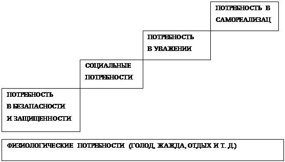 Рис.2. Уровни потребностей по А. МАСЛОУ Первая причина - это неудовлетворительные условия труда. Например, в холодное время года (осень, зима, весна) здание фермы не отапливается, отчего доярки и телятницы часто болеют и уходят на больничные. Поэтому необходимо, чтобы для них была оборудована комната отдыха, где можно погреться, выпить чая, почитать. График работы им это позволяет сделать.