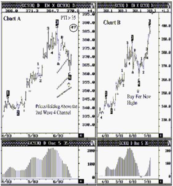Когда четвёртая Волна проходит, покупать начинают те трейдеры, которые пропустили весь подъём третьей Волны. Цены двигаются к новым максимальным ценам. Однако, повышение цен при подъёме происходит не так быстро, как в третьей волне. Данная разница в скорости увеличения цены улавливается осциллятором и может быть легко идентифицирована. Мораль истории такова: Осциллятор Эллиота всегда должен отслеживать расчёты по Волне Эллиота.