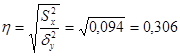 Рассчитаем эмпирическое корреляционное отношение по формуле: