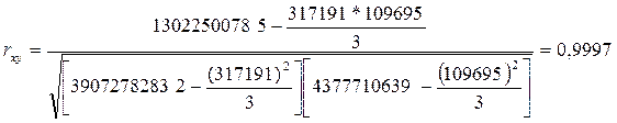 Это говорит о том, что на 99,9% вариация результативного признака обусловлена вариацией признака факторного.