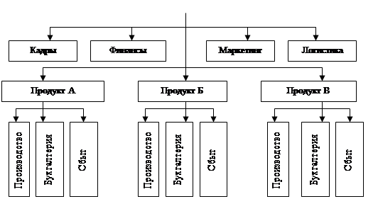 5. Дивизиональные организационные структуры управления. При дивизиональной структуре происходит деление организации на блоки: по видам товарам и услуг, по группам покупателей, по географическим регионам. Отсюда различают следующие виды дивизиональных структур: по продукту (продуктовая), по потребителю, географическая (территориальная, региональная).