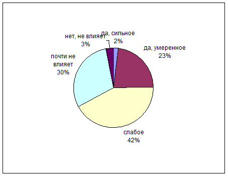 Анализ вопросов 12 и 13 дает информацию что конечный потребитель в своем большинстве (77%) удовлетворен ассортиментом представленной продукции. Также реклама влияет слабо на покупателя в 42% случаях из 100. На 23% реклама действует уверенно. Реклама вообще не влияет или влияет слабо на выбор сока в 3 и 30% опрошенных. Можно предположить, что эта та часть населения, у которой не хватает время на просмотр телевизора.