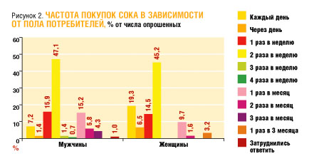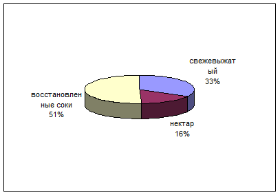 Достаточная доля опрошенных (27%) предпочитают пить соки. Значит, рассматриваемый сегмент рынка конкурентоспособен, не смотря на то, что на рынке много предложений разных напитков.