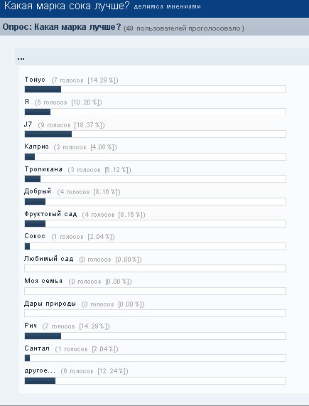 Любимая марка Нижегородцев, исходя из нашего опроса это соки марок «Я», «Тонус», «Каприз» и «Тропикана».