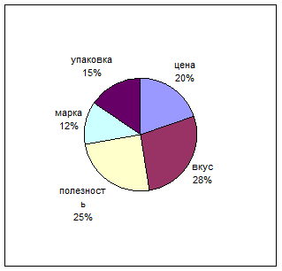 Следующим важным критерием является цена продукта. Сок является продуктом первой необходимости, ее покупают в дополнение к основному рациону, поэтому для большинства респондентов крайне важна цена марки сока.