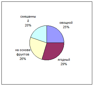 4 вопрос дает нам информацию о том, что на рынке в равной степени востребованы всевозможные соки. Как ягодные и овощные, так и фруктовые и смешанные.