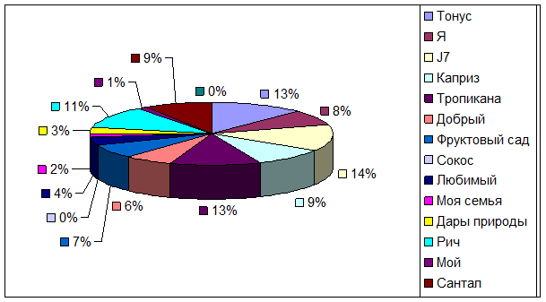Можно сделать вывод, что наиболее конкурентоспособными в Н. Новгороде являются следующие марки сока: «Я», «Тропикано», «Тонус».