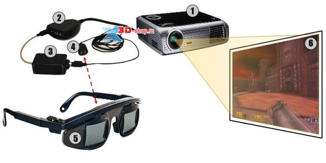 Сейчас существует стереопроекторы, ориентированный на образовательные учреждения. Для этого устройства не потребуется никаких специальных экранов, зато потребуются затворные стереоочки: проектор с рабочей частотой 120 Гц поочерёдно выдаёт отдельные изображения для левого и правого глаза (так что для каждого глаза частота обновления картинки составляет 60 Гц).