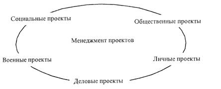 Business projects определяют собой сущность учения о менеджменте проектов. Ввиду ориентированности техники менеджмента на достижение успеха во многих других дисциплинах и областях развились своего рода ответвления от менеджмента проектов, например, в области общественных товаров и решений, сформировались так называемые public projects. В качестве другого примера можно назвать social projects, получивших свое развитие в области социально мотивированных проектов, целью которых является оказание помощи определенным слоям населения и проблемным группам.[4]