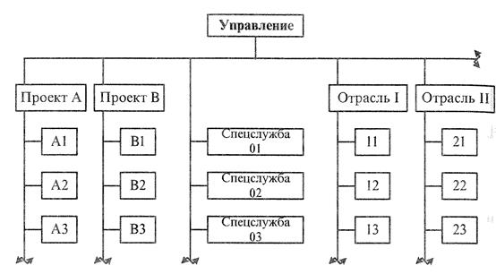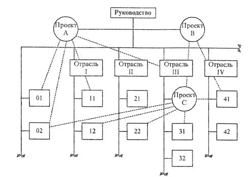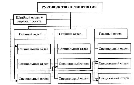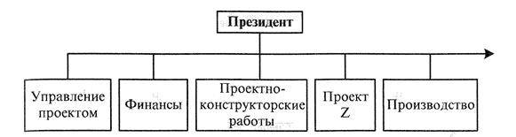 - проектная структура. Данный подход предполагает, что комплекс работ проекта разрабатывается независимо от иерархической структуры организации;