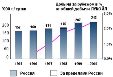 · Добыча за пределами России возросла более чем в 3 раза по сравнению с 1997г.