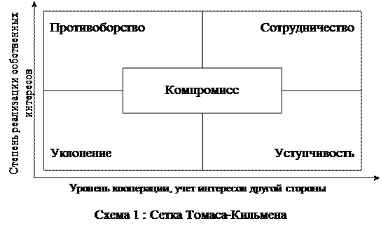 Существуют несколько эффективных способов управления конфликтной ситуацией. Их можно разделить на две категории: структурные и межличностные. Руководителям не следует считать причиной конфликтных ситуаций простое различие в характерах. Конечно, это различие может являться причиной конфликта в каком-то конкретном случае, но оно — лишь один из факторов, которые могут вызвать конфликт. Руководитель должен начать с анализа фактических причин, а затем использовать соответствующую методику. Уменьшить возможность конфликта можно, применяя методики разрешения конфликта.Четыре структурных метода разрешения конфликта — это разъяснение требований к работе, использование координационных и интеграционных механизмов, установление общеорганизационных комплексных целей и использование системы вознаграждений.Разъяснение требований к работе. Одним из лучших методов управления, предотвращающих дисфункциональный конфликт, — разъяснение того, какие результаты ожидаются от каждого сотрудника и подразделения. Руководитель уясняет все эти вопросы не для себя, а с тем, чтобы его подчиненные хорошо поняли, чего ждут от них в каждой данной ситуации.Координационные и интеграционные механизмы. Еще один метод управления конфликтной ситуацией — это применение координационного механизма. Один из самых распространенных механизмов — цепь команд. Если два или более подчиненных имеют разногласия по какому-то вопросу, конфликта можно избежать, обратившись к их общему начальнику, предлагая ему принять решение. Принцип единоначалия предполагает использование иерархии для управления конфликтной ситуацией, так как подчиненный прекрасно знает, чьим решениям он должен подчиняться.В управлении конфликтной ситуацией очень полезны средства интеграции, такие как управленческая иерархия, использование служб, осуществляющих связь между функциями, межфункциональные группы, целевые группы и межотдельские совещания. Исследования показали, что организации, которые поддерживали нужный для них уровень интеграции, добились большей эффективности, чем те, которые не сделали этого. Общеорганизационные комплексные цели. Установление общеорганизационных комплексных целей — еще один структурный метод управления конфликтной ситуацией. Эффективное осуществление этих целей требует совместных усилий двух или более сотрудников, групп или отделов. Идея, которая заложена в эти высшие цели — направить усилия всех участников на достижение общей цели.Например, если три смены производственного отдела конфликтуют между собой, следует сформулировать цели для всего отдела, а не для каждой смены в отдельности. Аналогичным образом, установление четко сформулированных целей для всей организации в целом также будет способствовать тому, что руководители отделов будут принимать решения, благоприятствующие всей организации, а не только их собственной функциональной области. Структура системы вознаграждений. Вознаграждения можно использовать как метод управления конфликтной ситуацией, оказывая влияние на поведение людей, чтобы избежать дисфункциональных последствий. Люди, которые вносят свой вклад в достижение общеорганизационных комплексных целей, помогают другим группам организации и стараются подойти к решению проблемы комплексно, должны вознаг