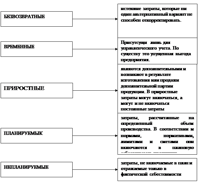 Решению каждой из названных задач соответствует своя классификация затрат (табл.1).
