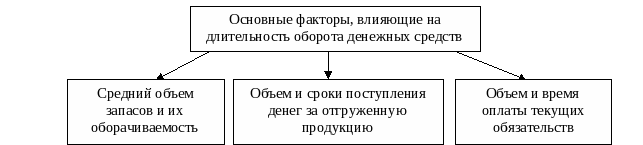 Рисунок 1.8 − Факторы, влияющие на длительность оборота денежных средств [6, с. 102]