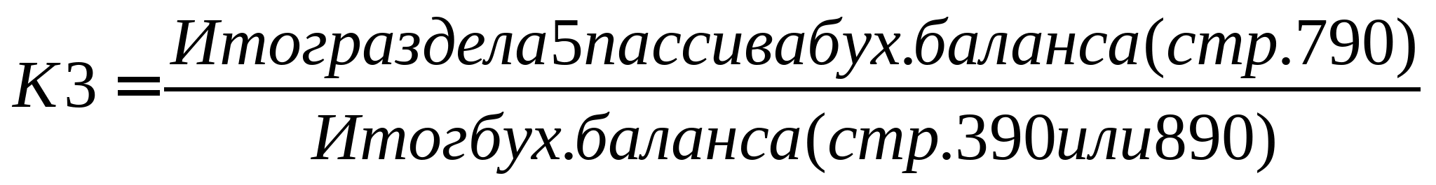 | Показатель источников средств | Показатели финансовой независимости, % | Изменение, +/- | Темп роста, % | | За пред. период (на начало года) | За отчетный период (на конец года) | | 1. Обобщающий коэффициент фин. независимости (уд. вес собств. источников в общей величине источников средств) Кс.и. = (раздел 3 баланса (стр.590) +/- раздел 4 баланса (стр. 690) / все источники (итог баланса (стр. 390 или стр. 890)) * 100 | 74,28 | 70,24 | - 4,04 | 94,56 | | 2. Доля заемных источников (степень задолженности) в общей величине источников средств Кз.и. = (5 раздел пассива баланса (стр. 790) / итог баланса = общие активы (стр. 390) = все источники средств (стр. 890)) * 100 или 100- Кс.и. | 25,72 | 29,76 | 4,04 | 115,70 | | 3. Коэффициент соотношения собственных и заемных источников Кс.с.з.и. = ((3 раздел баланса (стр. 590) +/- 4 раздел баланса (стр. 690) / 5 раздел баланса (стр. 790)) * 100 | 288,84 | 236,04 | - 52,79 | 81,72 | | 4. Уд. вес кредиторской задолженности в общей величине всех источников средств (Кредиторская задолженность (стр.730) / (итог баланса (стр.390 или стр. 890)) * 100 | 15,34 | 11,11 | - 4,23 | 72,41 | | 5. Уд. вес дебиторской задолженности в активах предприятия (Дебиторская задолженность (стр.250) / (итог баланса (стр.390 или стр. 890)) * 100 | 0,94 | 2,25 | 1,31 | 238,40 | | 6. Соотношение заемных и собственных источников (5 раздел баланса (стр. 790)) / (3 раздел баланса (стр. 590) +/- 4 раздел баланса (стр. 690)) * 100 | 34,62 | 42,37 | 7,74 | 122,37 | | 7. Уд. вес кредиторской задолженности в общей величине заемных источников (кредиторская задолженность (стр. 730) / 5 раздел баланса (стр. 790)) *100 | 59,65 | 37,33 | - 22,32 | 62,58 |