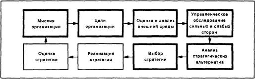 Философия и цели компании пересматриваются с участием акционеров с учетом ресурсов. На основе собранной информации о внешней среде как в целом, так и о состоянии и развитии отрасли и о конкуренции составляются прогнозы положения фирмы на будущее. Анализ прогнозов выявляет возможности и угрозы. Оценка результатов прошлой деятельности и текущих итогов выявляет проблемы и дает информацию для будущего развития фирмы.