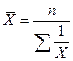 вычисляется для индивидуальных варьирующих признаков, выраженных в форме обратных показателей. Применяется в тех случаях, когда известны варианты признака, его объёмное значение, но не известны частоты. Простая средняя гармоническая вычисляется по следующей формуле: