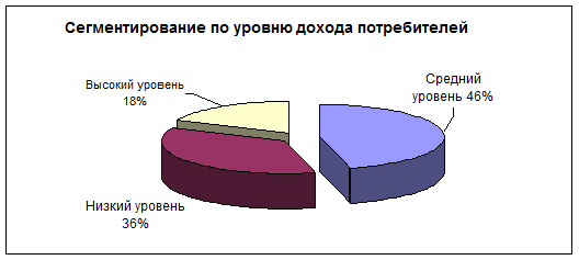 При анализе сегментирования потребителей по уровню доходов выяснили, что потребители с высоким уровнем дохода (18%) предпочитают и имеют возможность приобретать дорогую продукцию хорошего качества и импортного производства. Потребители со средним уровнем дохода (46%) могут приобретать товары достаточно высокого качества, но по более низкой цене и не фирменные. Потребители с низким уровнем дохода (36%) в основном при покупке товаров руководствуются таким фактором как цена, таким образом, они приобретают более дешевые товары. Можно сделать вывод о том, что для ООО «Мелодия» целесообразно будет ориентироваться на средним уровнем дохода.