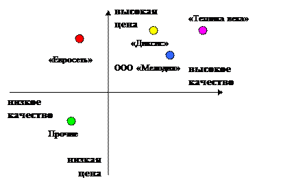 Рис.7 Позиционирование фирмы на рынке по параметрам цена-качество реализуемых товаров