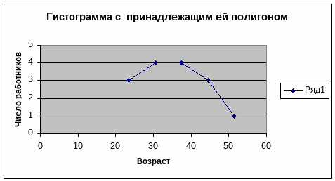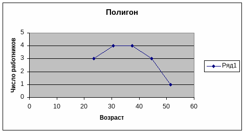 Известно, что возрастной состав работников компании “Акварель” состоит из 15 человек. Возрасты работников равны (лет): 39, 48, 20, 25, 35, 55, 33, 37, 46, 28, 31, 45, 30, 41, 26. Построить вариационный ряд (предварительно объяснив выбор и этапы его построения). По вариационному ряду построить полигон, гистограмму (с построенным на ней полигоном), кумуляту, огиву.