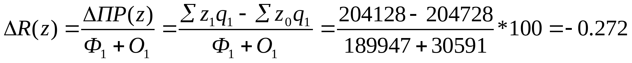 4)Изменение затрат на производство за счет изменения с/ти. Δ zq(z)= z1*q1-z0*q1=0,95*565+7,5*340-1,5*565-6,5*340=29,25