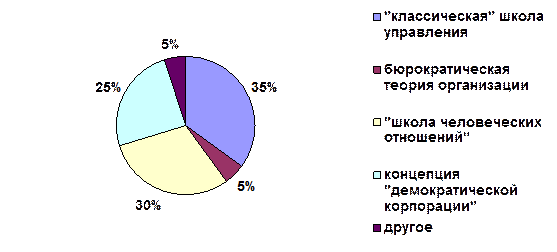А) «классическая» школа управления (разделение труда руководителя и исполнителя, каждый уровень занят своим делом и не вмешивается без необходимости в функции других);