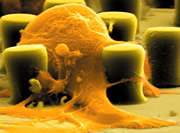 Взяв нейроны улитки, они закрепили их на кремниевом чипе при помощи микроскопических пластмассовых держателей (на фото
